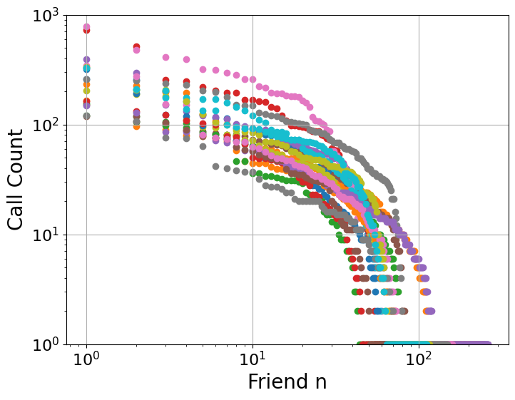 MacCarron, Kaski, and Dunbar analyzed a dataset of mobile phone calls from 2007, containing records from over 6 million users. To focus on personal (not business) relationships, they filtered the data to include only reciprocal calls and users who had between 100 and 500 contacts.